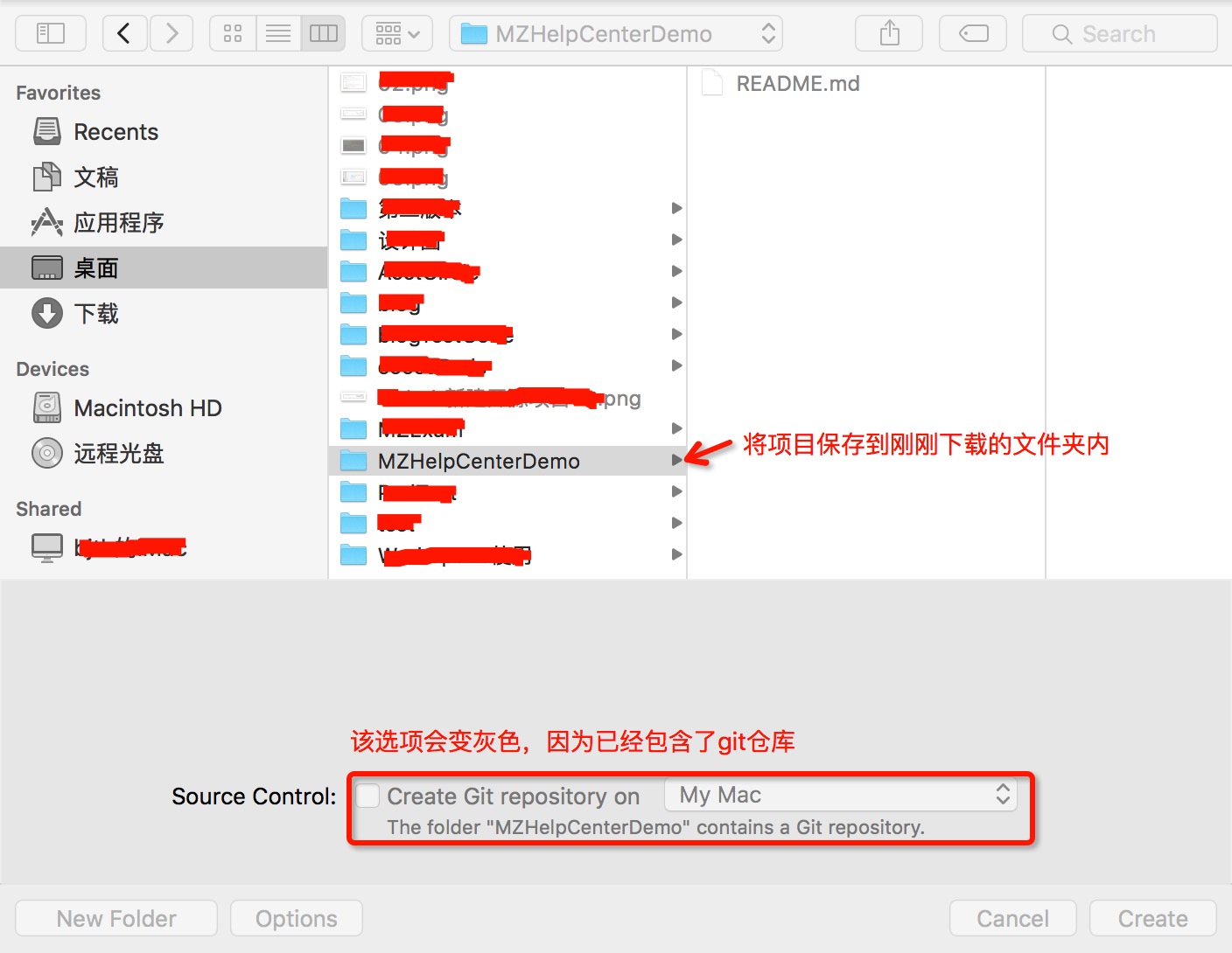 使用Xcode创建一个工程,将工程保存到该文件夹内。