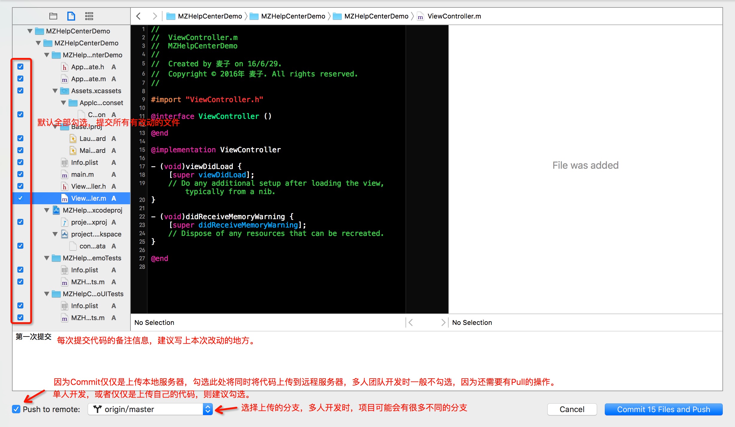 填写相关的说明, 如果仅仅是上传自己的项目就勾选push,push是将本地服务器的代码上传到远程服务器。